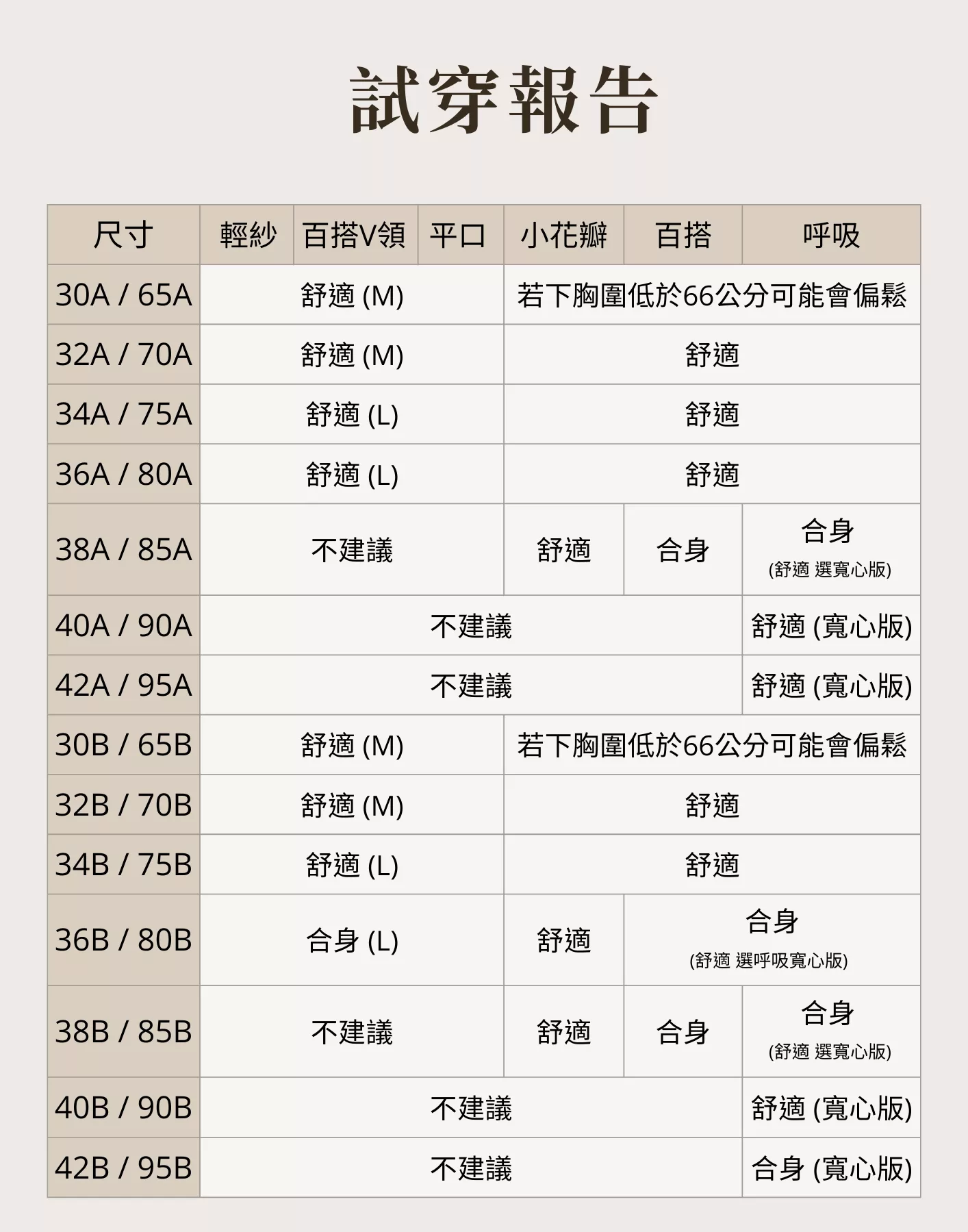 實測結果顯示 A–D 罩杯及介於D-小E的朋友穿起來舒適自然;若屬 E 罩杯以上、或較偏好明顯支撐感,會更推薦其他支撐度較高的款式